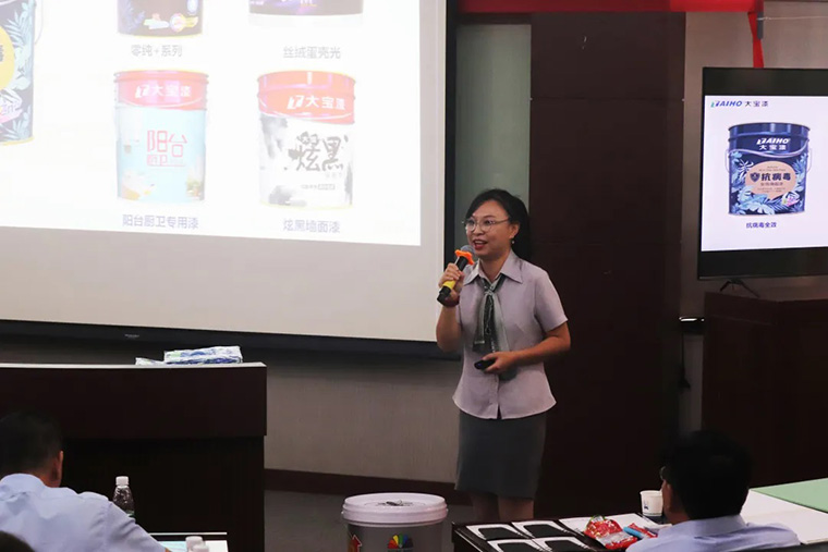 葉副總表示,此次推廣會議,旨在向大家宣導(dǎo)大寶近期在產(chǎn)品和服務(wù)方面所做的努力,希望這次新產(chǎn)品的推廣,能夠賦能經(jīng)銷商應(yīng)對裝修漆市場面臨的新挑戰(zhàn),促使大寶品牌不斷創(chuàng)新、不斷精進(jìn),引導(dǎo)裝修漆市場新趨勢、心服務(wù)。